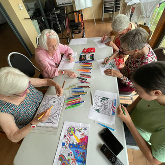 « Le Snoezelen est une activité vécue dans un espace spécialement aménagé, éclairé d'une lumière tamisée, bercé d'une musique douce, un espace dont le but est de recréer une ambiance agréable. On y fait appel aux cinq sens : l'ouïe, l'odorat, la vue, le goût et le toucher » les enfants et nos résidants ont apprécié cette nouvelle activité. celle ci a favorisé le lien intergénérationnel avec les résidants et les enfants du Relais Assistants Maternels.